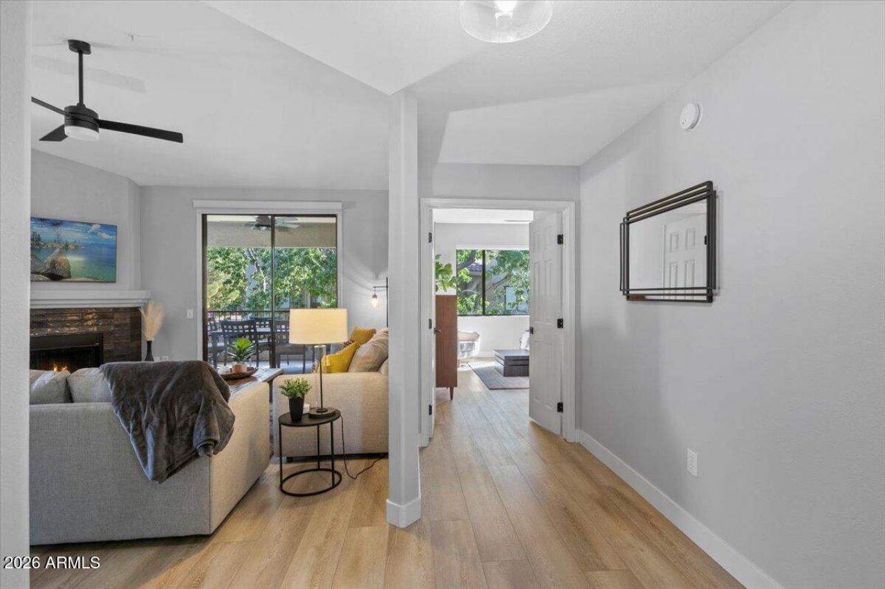 Beautifully remodeled 2-bedroom, 2-bath condo in a desirable Scottsdale location. This move-in ready home has been completely updated from top to bottom, featuring new flooring, fresh paint, a fully renovated kitchen with high-end appliances, and beautifully upgraded bathrooms. All fixtures and blinds have been thoughtfully replaced, creating a modern and cohesive feel throughout. The open living space flows out to a private balcony with additional storage and peaceful views--perfect for relaxing mornings or evening unwinding. The split-bedroom layout offers privacy and functionality for guests, roommates, or a home office. Enjoy access to community amenities including a pool, jacuzzi, tennis court, and walking paths. Ideally located directly across the street from pickleball courts and a dog park, and just minutes from Scottsdales popular dining, shopping, golf, and entertainment. Perfect as a full-time residence or seasonal getaway. Furniture available on a separate bill of sale.