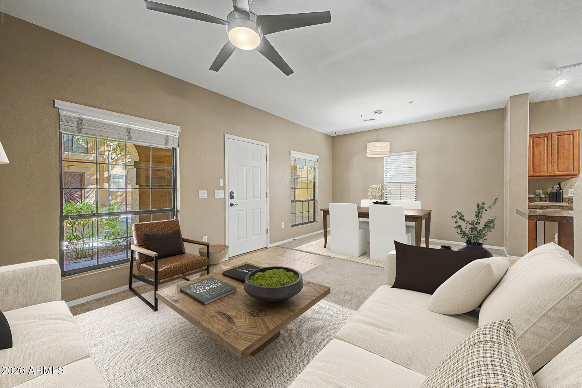 A spectacular 3 bed, 2.5 bath end-unit townhome in the gated community of Villa Milano, a quiet and private setting surrounded by mature shade trees. The community offers a pool, clubhouse, and well-maintained common areas, with water, trash, and landscaping included in the HOA!This two-story residence features direct entry from the garage into the main living area and a bright, functional layout with abundant natural light. Upstairs, youll find all three bedrooms, including a spacious primary suite with a private balcony overlooking the landscaped grounds.The home has been consistently cared for with key updates already completed, including a 2020 AC unit and 2021 water heater, along with updated faucets in 2023. A Flow-Tech anti-scaling system has been installed to help reduce mineral buildup. Washer, dryer, and refrigerator are all included for added convenience.The association is scheduled to repaint the entire complex in 2026, contributing to ongoing upkeep. Located in North Phoenix with easy access to SR51, I-17, and Loop 101, the property is within a mile of grocery stores, restaurants, and major retailers including Target and Home Depot.