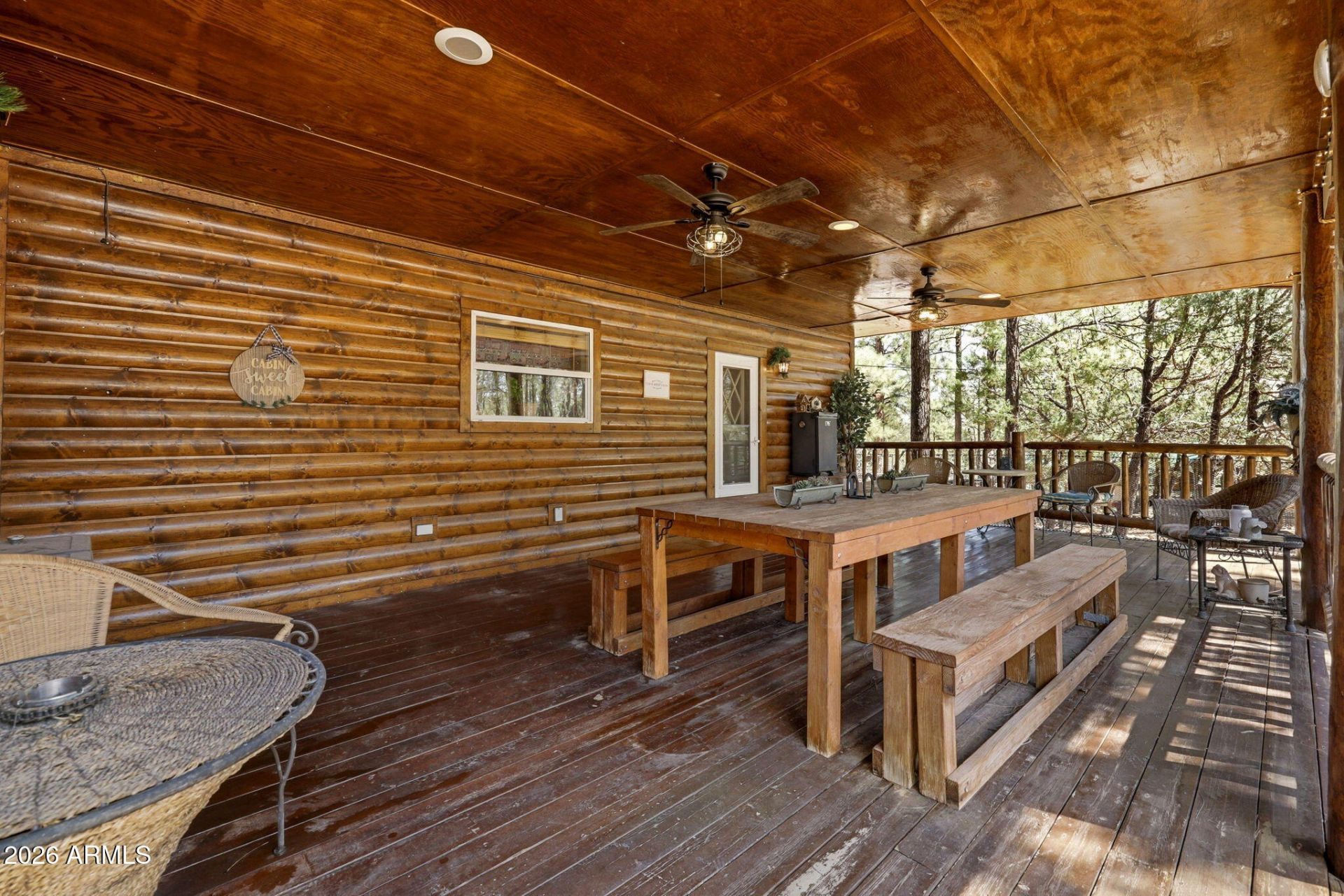 Charming Mountain Retreat in the Pines! Nestled at the end of a private road, this stunning 3-bedroom, 3-bath cabin offers the perfect blend of tranquility and modern comfort. The open-concept great room features vaulted T&G ceilings, a spacious kitchen with sleek granite countertops, and a floor-to-ceiling rock-accented gas fireplace that serves as the focal point of the living area. The home boasts two primary suites--one on the main level and another smaller suite upstairs--both offering cozy gas rock fireplaces. The split third bedroom ensures privacy for guests and includes an attached loft space that can easily be used as an extra sleeping area or office. Enjoy expansive outdoor living with both front and rear covered decks, perfect for soaking in the serene surroundings. A large spa awaits, ideal for relaxing after a long day and stargazing under the clear mountain skies.Inside, the fun continues with a pool table in the great room, perfect for entertaining guests. The spa, most furnishings, and horse stall panels are all included in the sale, making this cabin an easy, turn-key retreat for you to enjoy right away!The property also features a covered dog run with a doggie door, a large laundry room with ample storage, and an oversized attached garage. The fully fenced lot is a dream for animal lovers, offering an additional fenced horse turnout area, separate covered stalls with lighting, power, and water, along with a chicken coop and tack room.All of this, with NO HOA, means you can truly make this space your own!