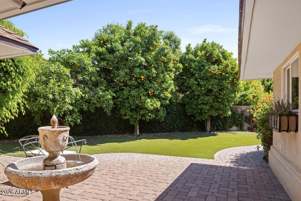 Tucked away in a quiet cul-de-sac within the prestigious Bartlett Estates just across from The Biltmore, The Clementine Cottage is a refined, 2,736 sqft single-level residence embodying timeless charm. From the quaint courtyard to the rich hardwood floors and crown molding throughout, this 3-bedroom, 3-bathroom home seamlessly blends elegance with comfort. The gourmet chefs kitchen features premium Viking appliances, granite countertops, and custom cabinetry. The expansive primary suite is a secluded sanctuary, complete with dual walk-in closets, a spacious ensuite, and direct patio access for morning coffee. The main living area is anchored by a cozy fireplace and flows to a lush backyard, ideal for alfresco dining among mature citrus trees. (continued in supplement remarks) Updates include a roof replacement, new water heater, and features like a water leak detector and sensors for peace of mind. Additional highlights include a two-car garage with extensive storage and private access to the community pool. Situated just steps from world-class golf at the iconic Arizona Biltmore Resort and premier shopping and dining at Biltmore Fashion Park, this is a fabulous opportunity in one of Phoenixs most desirable areas.