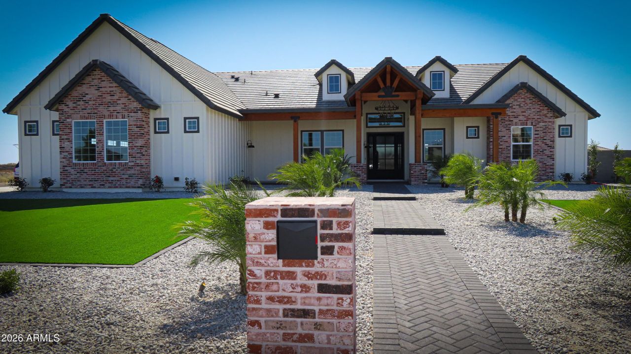 Welcome home to this beautiful brand new build Modern Farmhouse! This property sits on a corner acre lot with spectacular mountain views! Step into an impressive open floor plan that boasts Modern Farmhouse living with a spacious great room w/ vaulted beamed ceilings, tile flooring throughout, modern linear a/c vents, recessed lighting, RV gate, 3 car side garages that provide an EV charging outlet and a mini-split a/c unit. Lavish bathrooms designed with high end aesthetic fixtures, owners suite also features vaulted beamed ceiling, double vanity and a dreamy walk in closest. The gorgeous open concept upgraded Kitchen features a large island, quartz countertops, high end appliances and ample cabinet and counter space. Country living couldnt get any better and this beauty wont last long!