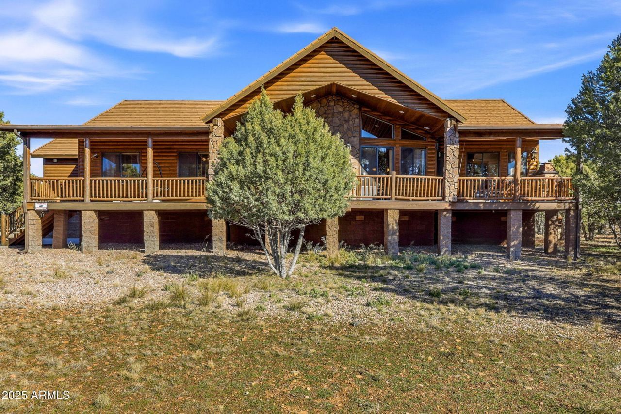 Nestled on a private, wooded 0.74-acre lot, this stunning custom log home offers 2,539 sq ft of single-level living with 4 bedrooms and 3 baths. Enjoy vaulted ceilings, a grand stone fireplace, and an open floor plan that flows from the upgraded kitchen with stainless steel appliances and walk-in pantry to spacious dining and living areas. Expansive decks provide serene outdoor living surrounded by towering pines. The primary suite offers peaceful privacy, and additional bedrooms accommodate family or guests. A versatile bonus room with its own entrance is ideal for an office or aviation-themed hobby space. Located in Mogollon Airpark, residents enjoy a unique lifestyle with direct access to a private runway and a welcoming mountain community. A rare opportunity for a full-time home or