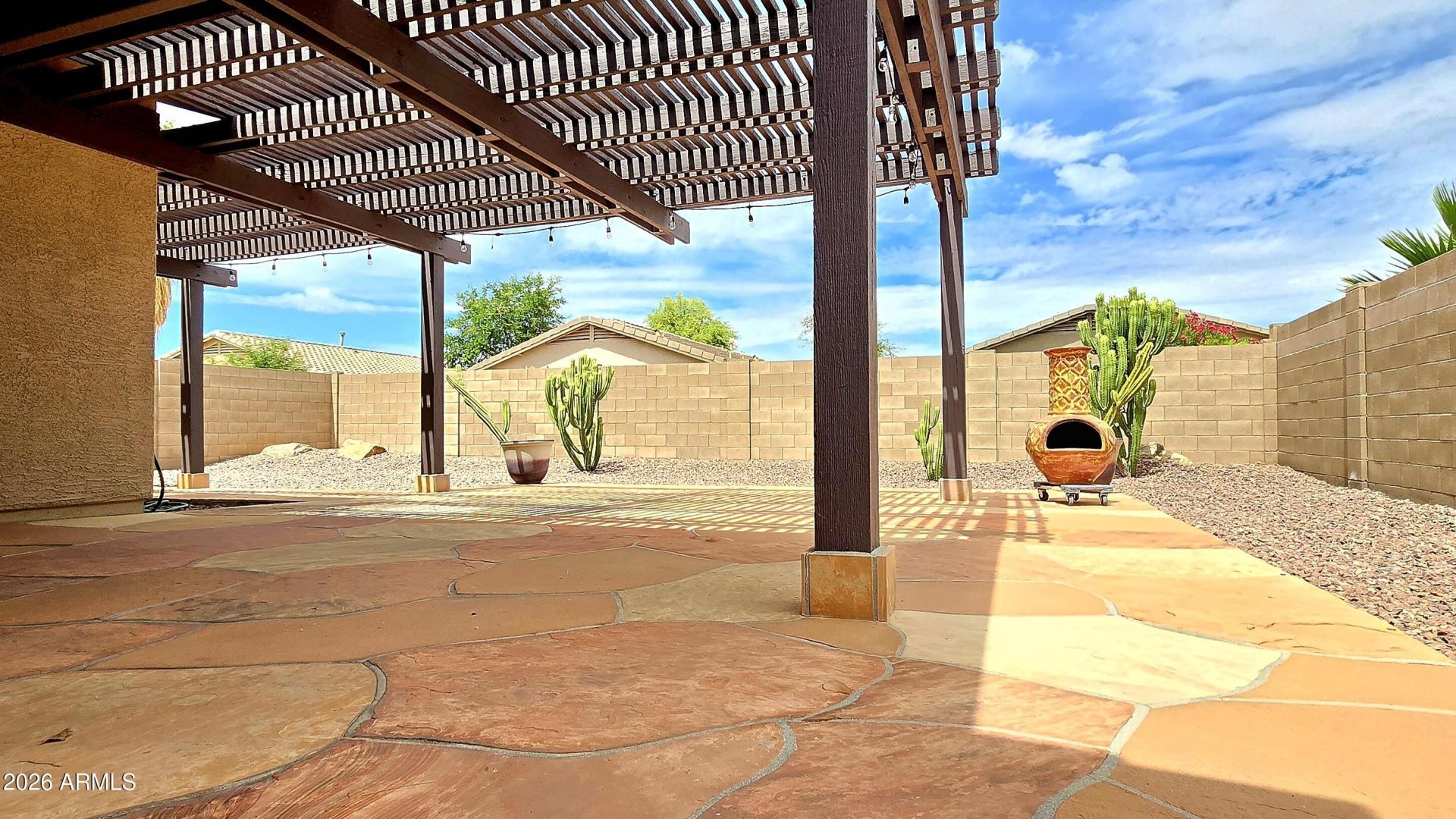 Well-maintained 2 bed, 2 bath home (with a den that can be converted to a 3rd bed) offering 1,398 sq ft with open great room floorplan and desirable indoor-outdoor living. Kitchen features ample cabinetry, large island, and stainless appliances overlooking living area with gas fireplace.Step outside to your private backyard retreat featuring flagstone pavers, a covered patio, and low-maintenance desert landscaping -- perfect for enjoying Arizona sunsets, weekend BBQs, or peaceful morning coffee.The garage includes a built-in workbench and insulated garage door, ideal for hobbies, storage, or keeping things cool during summer months.Easy living, great indoor-outdoor flow, and timeless Southwest appeal -- this home is ready for its next chapter.