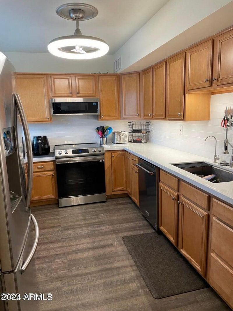 AVAILABLE FOR MOVE IN APRIL 24th - DECEMBER 31st. Stainless steel appliances, updated kitchen countertops and primary bathroom await you in this rare spacious, fully furnished, 3bed/2 bath townhouse. Beautifully and tastefully furnished with all you will need to enjoy your eight months here. Ideal location, only steps away from a community pool, laundry, and picnic area. Walk past colorful, desert landscaping, then across 68th St. to fashion Square. Enjoy high end shopping and dining, or drive just blocks to tourist attractions in Old Town Scottsdale and night life. World class golf courses are nearby. Cable is available at tenants expense. Internet, water, trash and HOA fees paid by owner. Electricity is tenant responsibility.