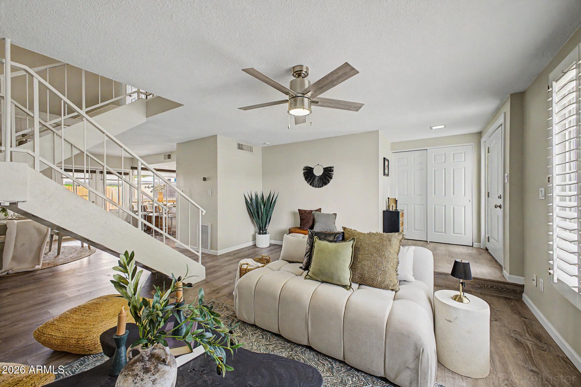 Discover comfort and convenience in this charming 4-bedroom and 2.5 bath townhome just minutes from it all. Youll have Chaparral Park right near your doorstep. Location truly sets this home apart just 7 minutes from Scottsdale Fashion Square, 14 minutes from Phoenix Sky Harbor International Airport, and surrounded by some of the areas best dining and entertainment options. Step inside to an inviting living space. The eat-in kitchen features granite counters, stainless steel appliances, and a stone-tile backsplash. The primary suite offers soft carpeting and a private bath. Relax outdoors on the covered patio with easy-care turf. Includes a 2-space carport. Come see it for yourself and fall in love!